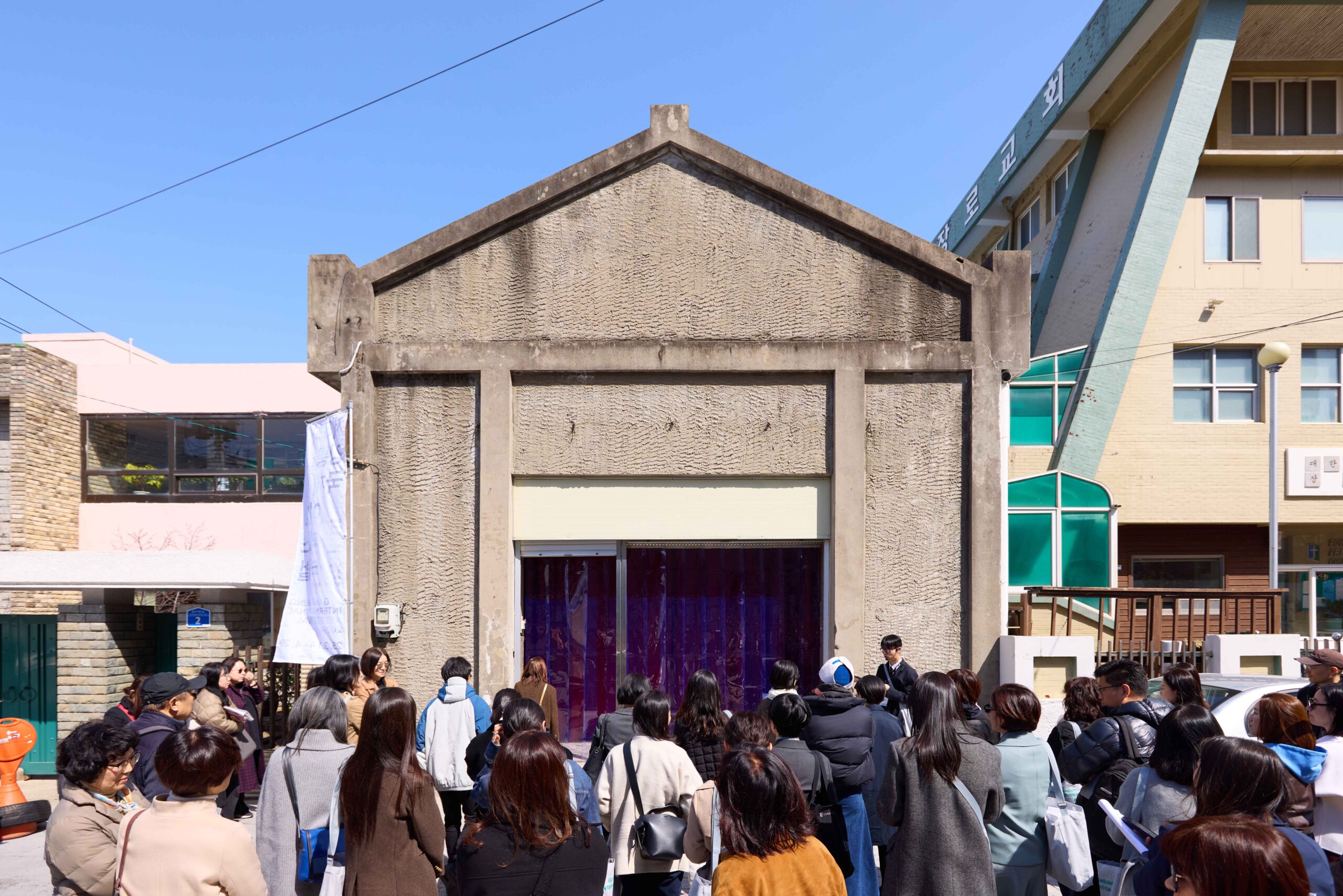 옥천동 웨어하우스는 동부시장 인근에 위치한 공간으로 도시재생사업이 활발히 진행 중인 지역에 자리하고 있다. 과거에는 양곡 창고로 시작해 냉동 창고 등 물류 보관 장소로 쓰였지만 한동안 활용되지 않은 유휴 공간으로 남아 있었다. 이러한 장소를 문화예술의 무대로 전환하고자 제2회 강릉국제아트페스티벌(GIAF23)에서는 이 공간을 누구에게나 열려 있는 전시 공간으로 탈바꿈시켰다. 당시 박선민은 강릉의 역사가 깃든 노암터널을 주제로 한 〈귀와 눈 : 노암〉을 이곳에서 선보였다. 이 시는 지역사회와 방문객 모두에게 긍정적인 반응을 이끌어냈고 이후 이번 페스티벌에서도 옥천동 웨어하우스를 다시 활용하게 된 계기가 됐다.